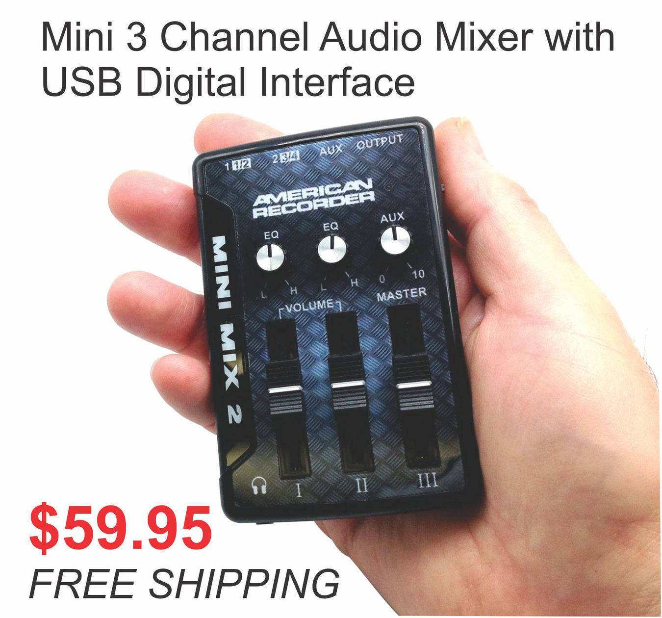 Compact and battery powered mini mixer is simple to use with four 1/4" unbalanced input channels and one 1/4" TRS balanced output with a master out...