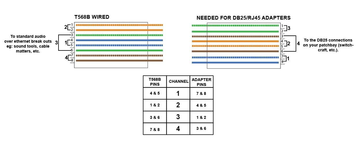 AMERICAN RECORDER DB25 to Dual RJ45 Adapter with TASCAM DIGITAL/ANALOG Pinout